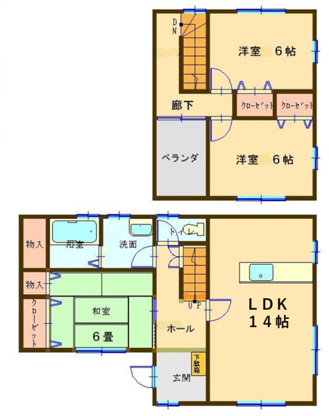 | 間取り詳細 | 1F:和室6畳、LDK14畳 2F:洋室6畳×2 | 占有面積 | 85.29㎡ |