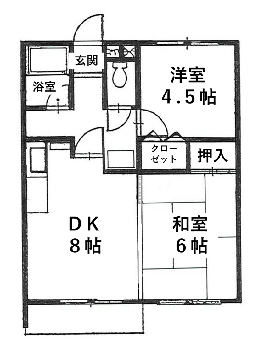 | 間取り詳細 | DK:8帖 和室:6畳 洋室:4.5帖 | 占有面積 | 43.06㎡ |