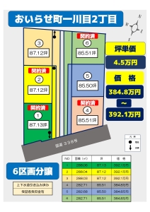 ◇残り2区画◇ ☆①②④⑥契約済み☆ おいらせ町一川目2丁目 6区画分譲 384.8万円~