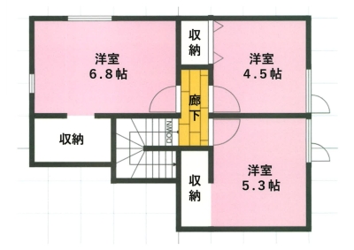 | 間取内訳 | 1F : LDK17.5帖 2F : 洋室6.8帖 洋室5.3帖 洋室4.5帖 | ||
